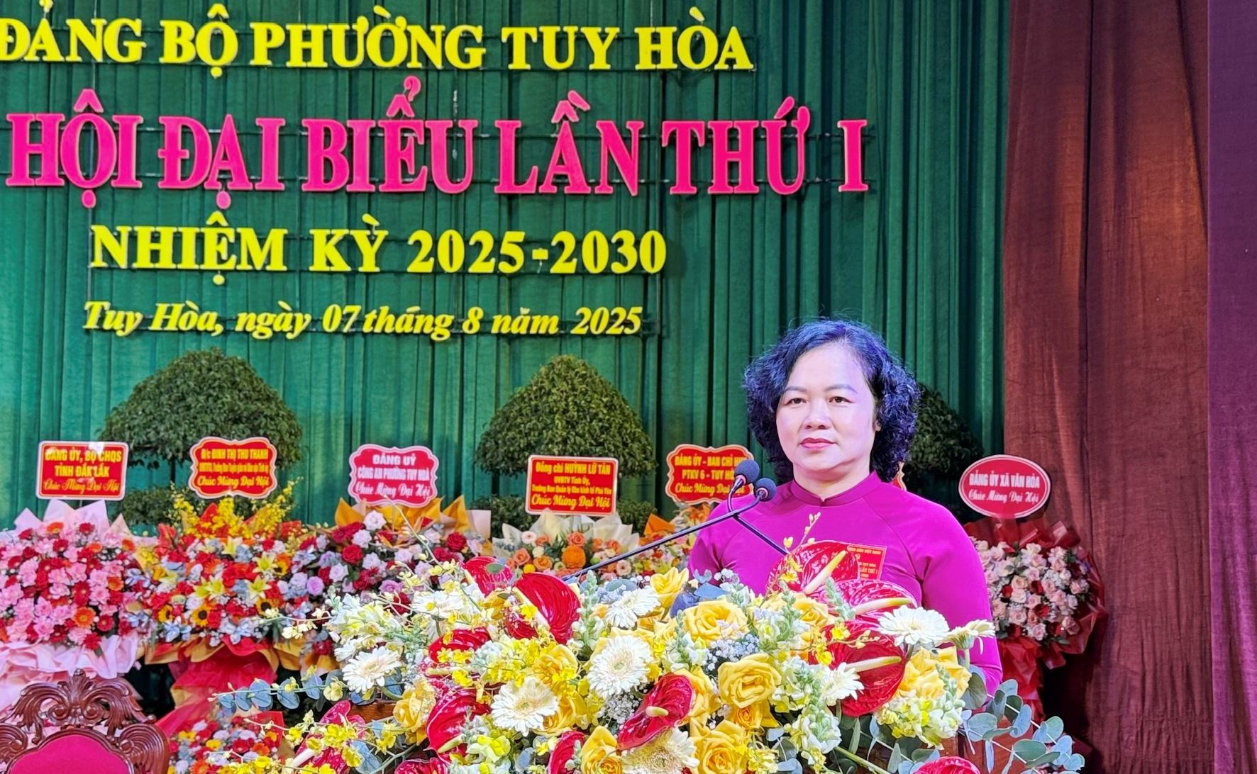 Chiều 7/8, Đảng bộ phường Tuy Hòa (tỉnh Đắk Lắk) đã tổ chức Đại hội đại biểu lần thứ I, nhiệm kỳ 2025 - 2030. Đồng chí Cao Thị Hòa An - Phó Bí thư Thường trực Tỉnh ủy, Chủ tịch HĐND tỉnh dự và phát biểu chỉ đạo đại hội.